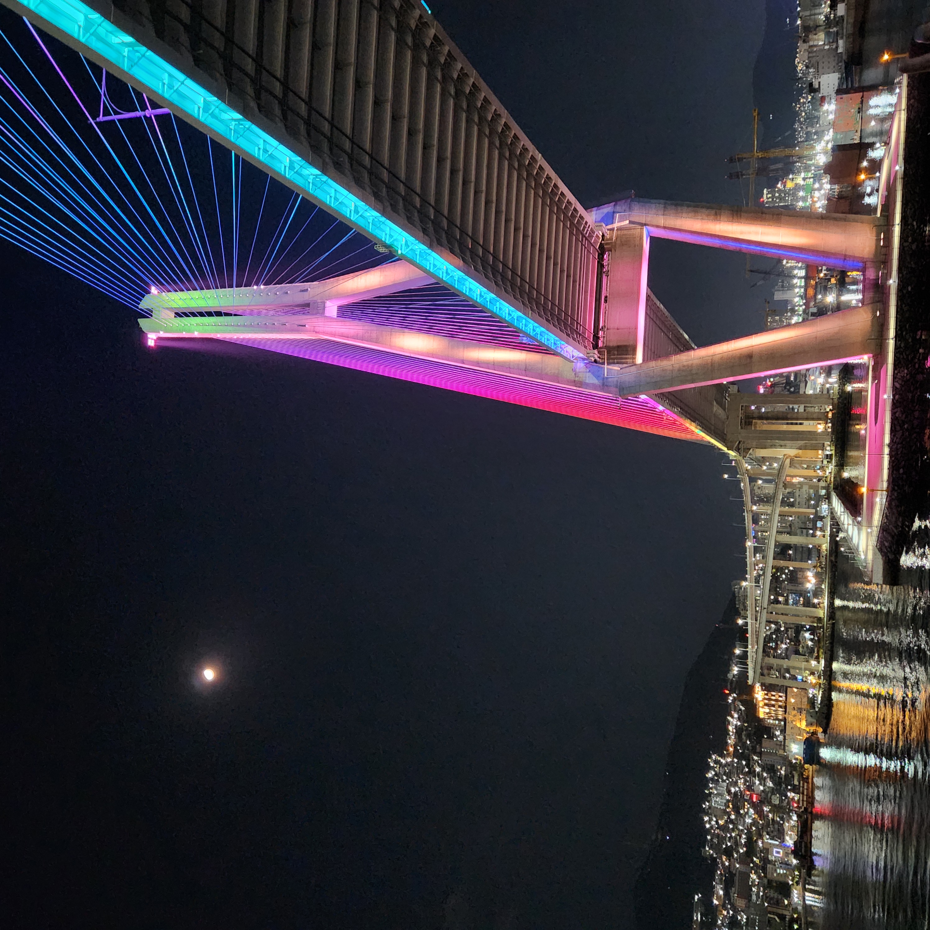 부산대교 밑을 지나는 중.