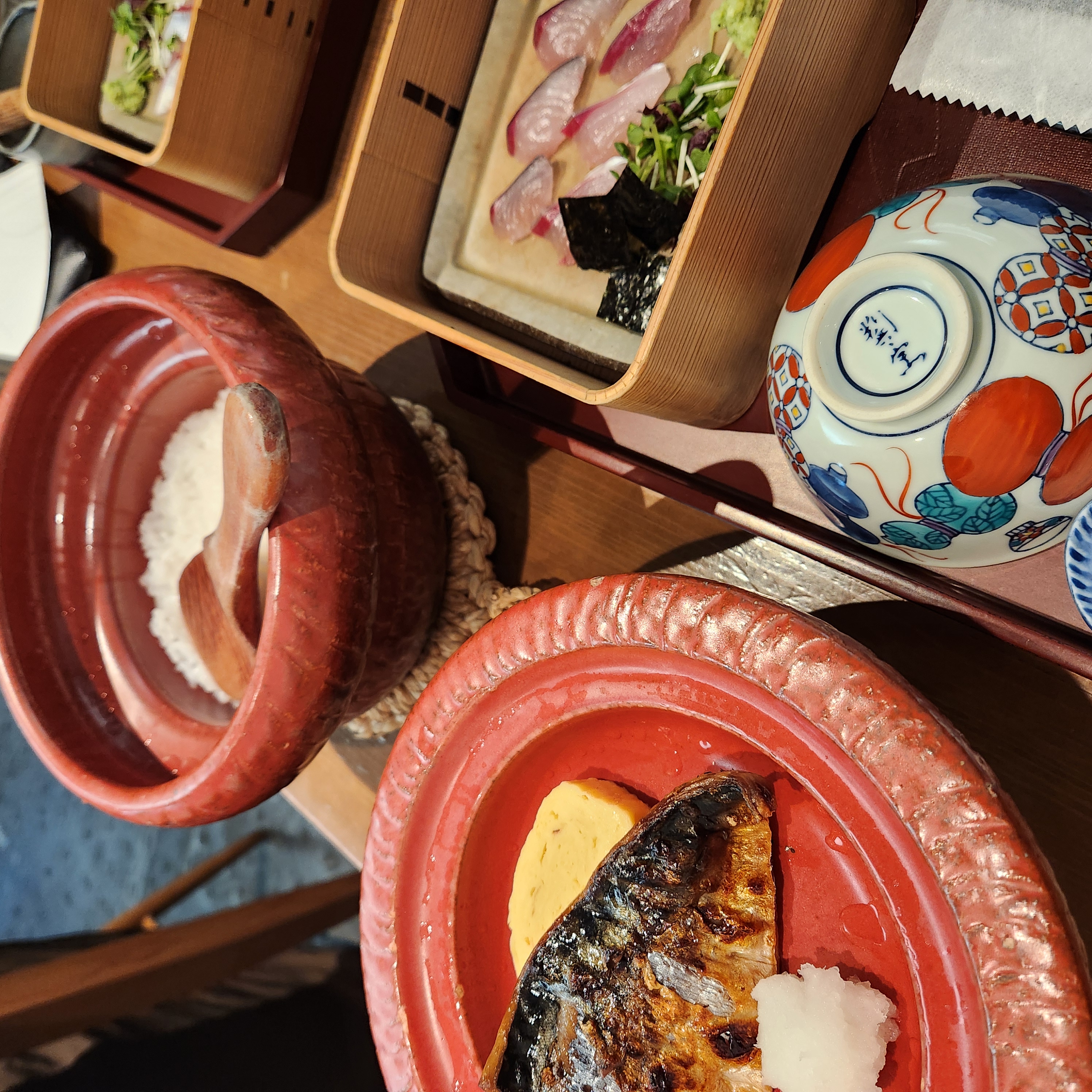 후쿠오카에서는 고마사바라고, 깨와 함께 고등어를 먹는데 난 깨를 못 먹기 때문에 예약 당시 깨를 제공하지 말아 달라 했더니 깨가 없다.