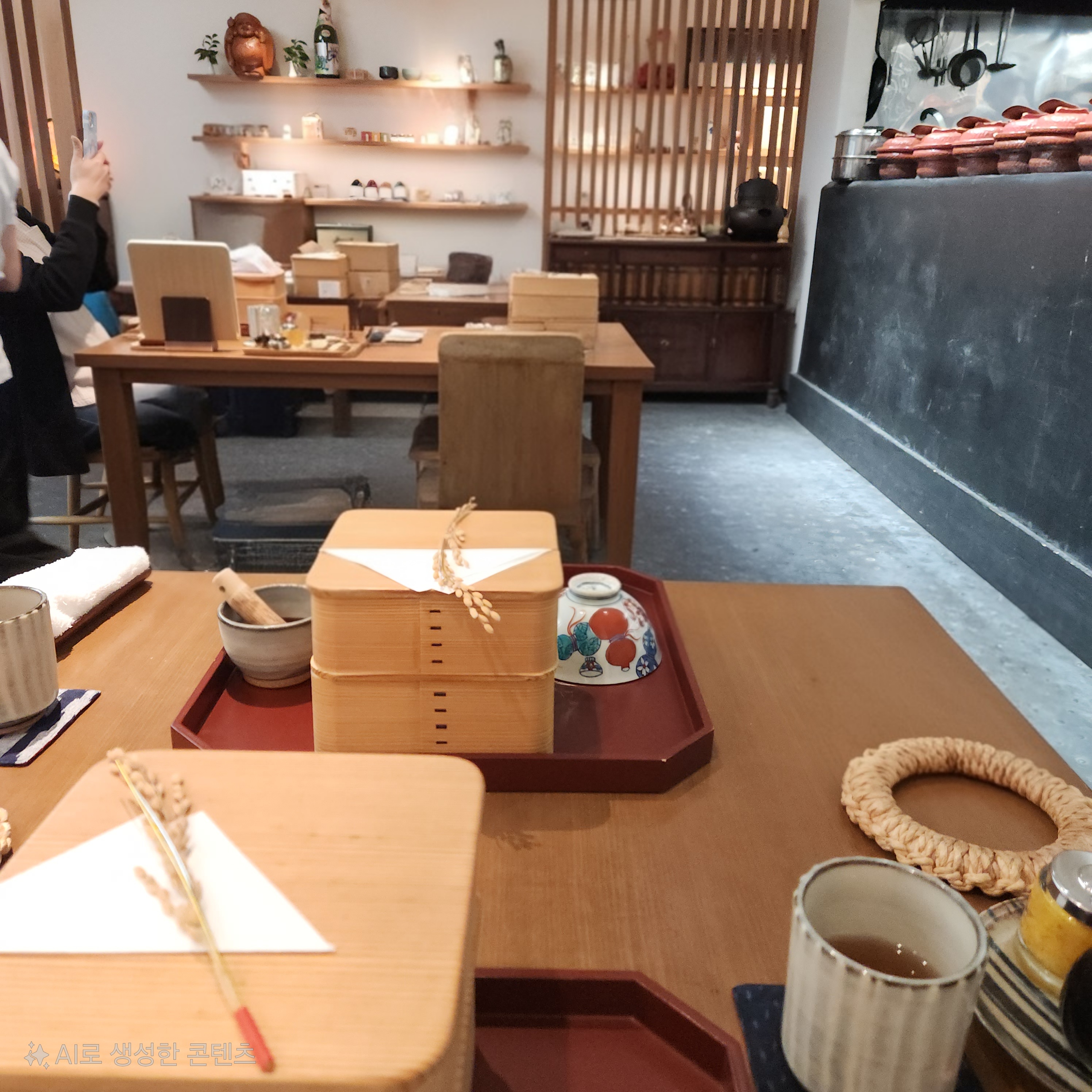 그럼 직원이 소스 그릇과 깨를 갈았던 도구를 같이 수거해 간다.